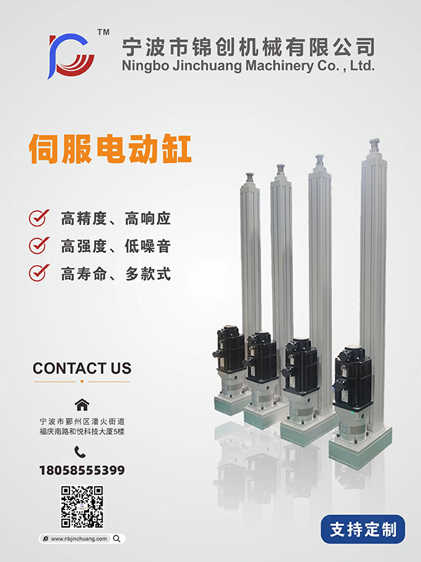 宁波市锦创机械有限公司是一家专业生产伺服电动缸的生产厂家,本公司主要专注于设计、加工和销售、伺服电动缸、电动推杆、直线运动模组及相关自动化部件业务,并根据客户需求定制系统集成,打造工业4.0无人化精密装配智能生产线。